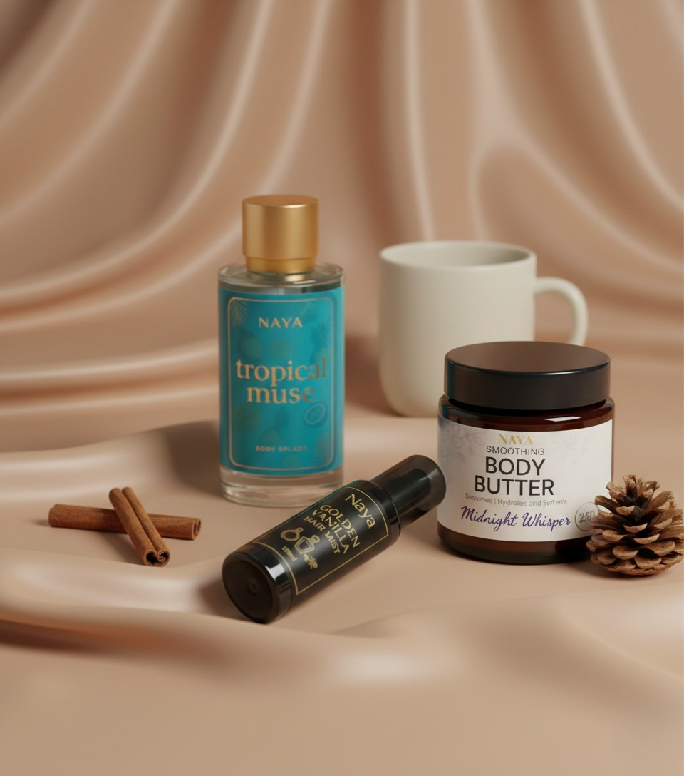 عشان تكوني “فواحة ماشية” وريحتك تفضل ثابتة من شعرك لرجلك، لازم ترطبي وتعطري في نفس الوقت. الباكدج دي فيها كل اللي محتاجاه لروتين شتوي دافي وفخم.